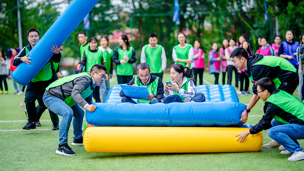 本次運動會共設(shè)置科技創(chuàng)新聚合力—百發(fā)百中、技術(shù)領(lǐng)先創(chuàng)佳績—爭分奪秒、交通強國守初心—火炬?zhèn)鬟f、百年黨史繼前行—團隊車輪、共繪藍圖新征程五個項目。賽場上,掌聲、笑聲、助威聲此起彼伏,處處洋溢著全員參與、團結(jié)協(xié)作、健康快樂的體育精神,精彩紛呈的競技場面不斷上演,把運動會一次又一次推向高潮。