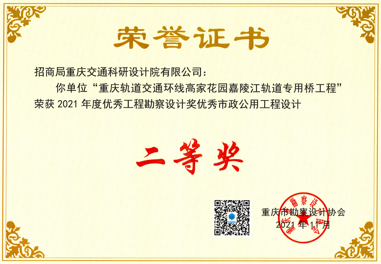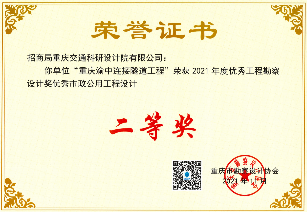 招商交科榮獲6項2021年度重慶市勘察設計協(xié)會優(yōu)秀設計獎