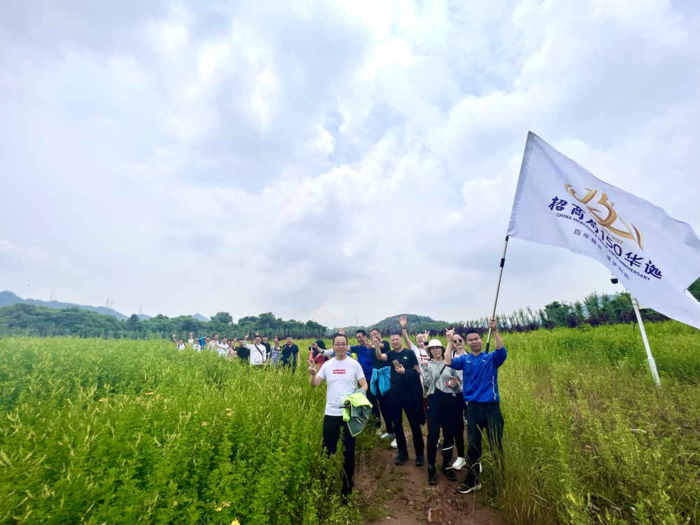 活動結(jié)束之際,陽光初現(xiàn),在寬闊的草地上,全體參加人員一起用隊列拼成數(shù)字“150”,大聲喊出“百年蝶變 逐夢向前”,為招商局創(chuàng)立150周年獻上最誠摯的祝福。