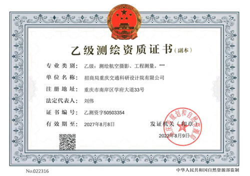 招商交科取得測(cè)繪乙級(jí)資質(zhì)