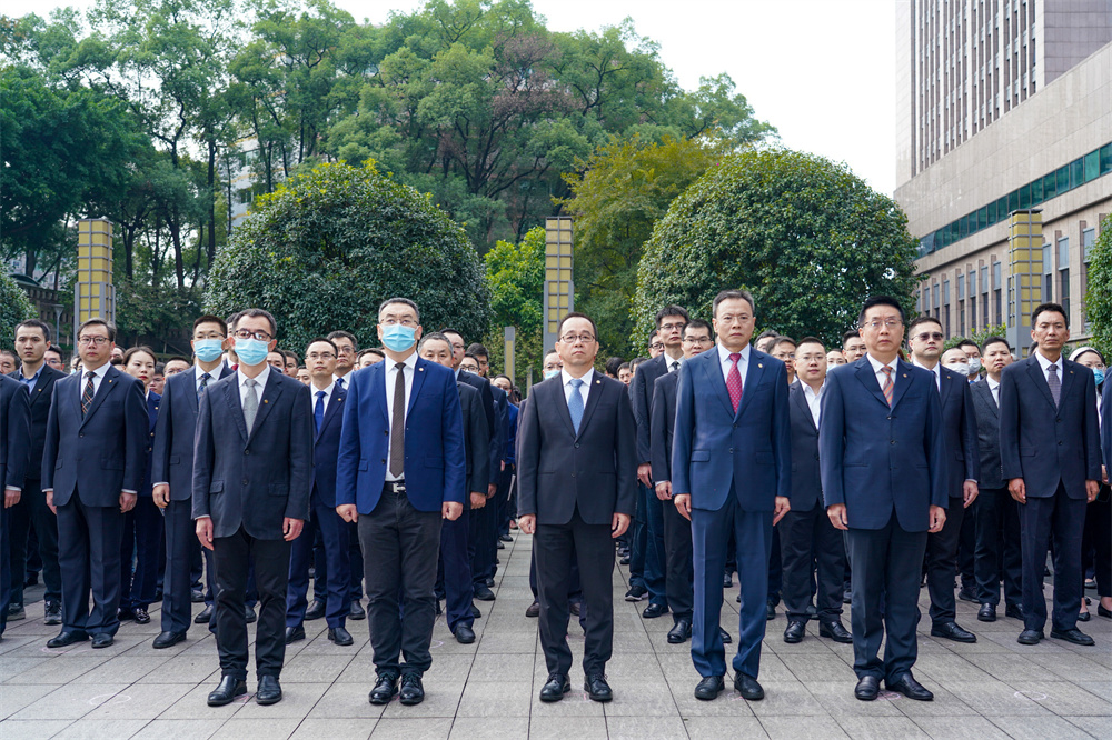 觀看集團繆建民董事長講話并舉行“公司日”在渝升旗儀式
