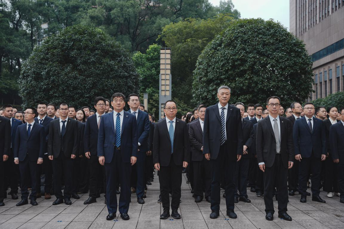 上午9時(shí)零5分,招商交科在交科院廣場(chǎng)舉行了升旗儀式。招商交科在家領(lǐng)導(dǎo)班子,各部門(mén)及單位員工代表,部分在渝招商系單位員工代表300余人參加儀式。