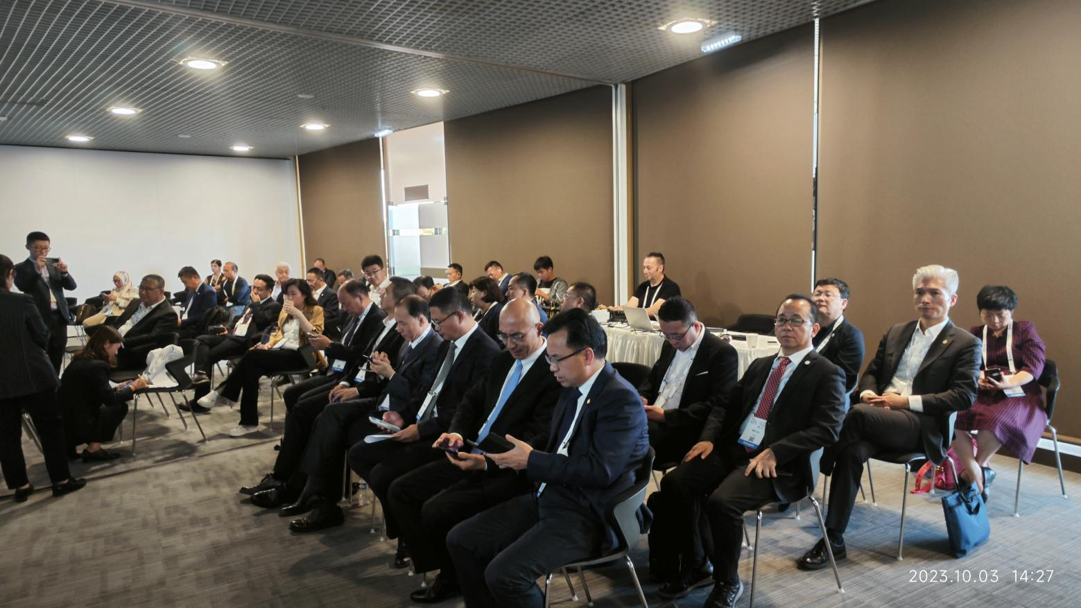 10月2日-3日上午,劉偉參加了主旨報告論壇——斯洛伐克前副總理兼財政部長 Miklos作關(guān)于烏克蘭戰(zhàn)后道路基礎(chǔ)設(shè)施重建融資方面的前瞻思考報告;隨后,對世界道路協(xié)會的各成員國的技術(shù)展臺和相關(guān)邊會進行了全程觀摩,并與法國、英國和日本等國際友人進行了熱烈技術(shù)交流。在中國展臺,劉偉向交通運輸部路網(wǎng)中心主任孫永紅、中國公路學會副理事長兼秘書長劉文杰、中交路橋副總經(jīng)理李剛等單位代表介紹了招商交科近況,也與陜西省公路學會理事長楊育生、陜西省交通運輸廳副廳長萬振江、中交資管董事長馮錫榮、陜西交控集團副總經(jīng)理馬小偉、貴州公路集團副總經(jīng)理張勝林等中國團有關(guān)代表進行了互動交流。