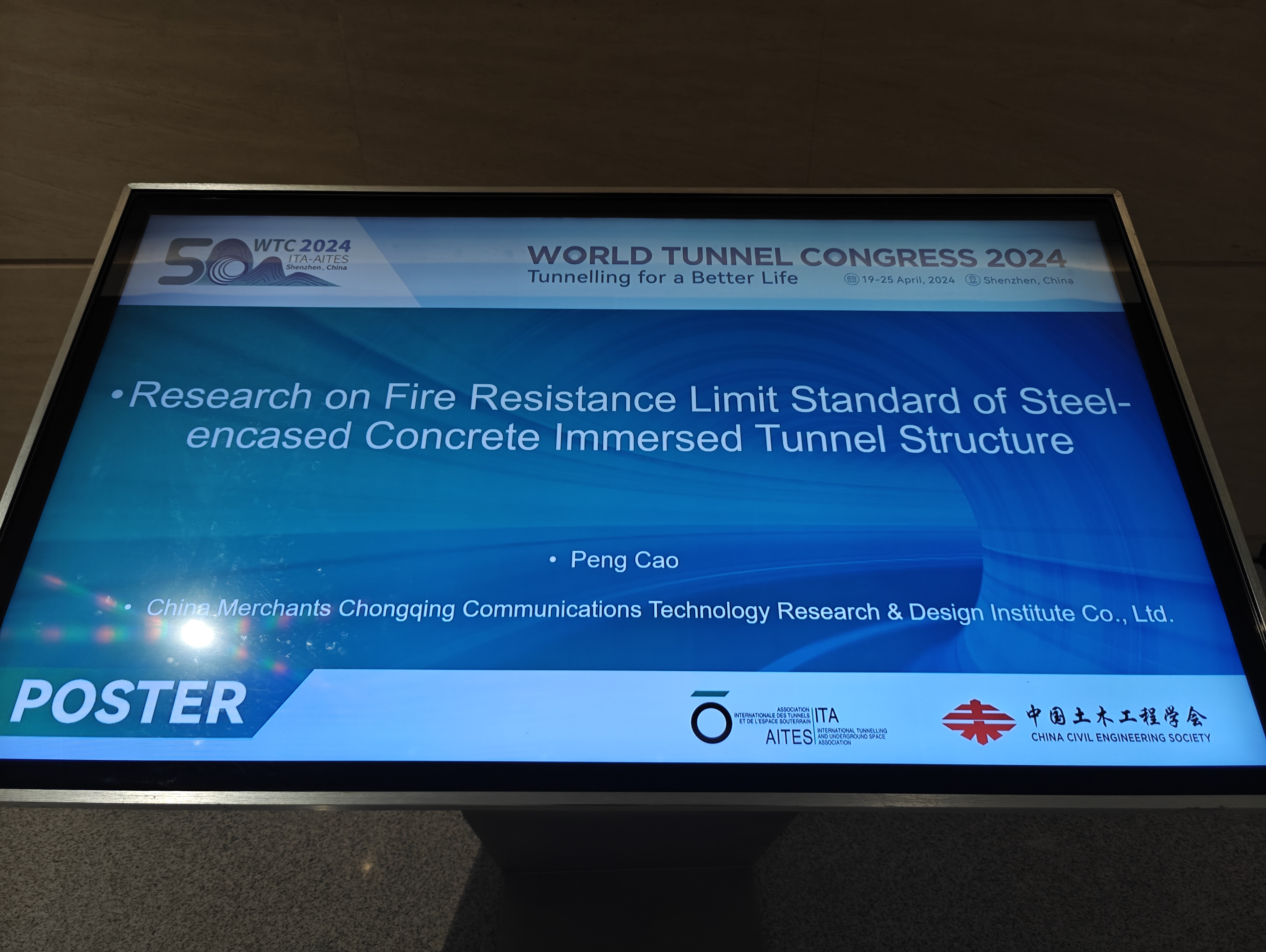 在技術會議與學術報告期間,招商交科隧道研究院院長、公路隧道國工中心主任了浩和技術骨干曹鵬分別作題為"Researchon online intelligent prediction ofservice status of immersed tunnebased on artificial intelligenceResearch on fire resistance limitstandard of steel-encased concreteimmersed tunnel structure"的專題海報報告,探討了利用人工智能技術在沉管隧道服役狀態(tài)的在線智能預測方面的最新研究成果,以及鋼殼混凝土沉管隧道結構耐火性能的研究成果。沉管隧道服役狀態(tài)的在線智能預測實現了沉管隧道運行狀態(tài)的實時監(jiān)測和預警,提高隧道智能運營的安全性和效率。鋼殼混凝土沉管隧道結構耐火性能,闡述了隧道結構的耐火極限標準,為隧道火災安全提供了重要的理論依據和實踐指導。