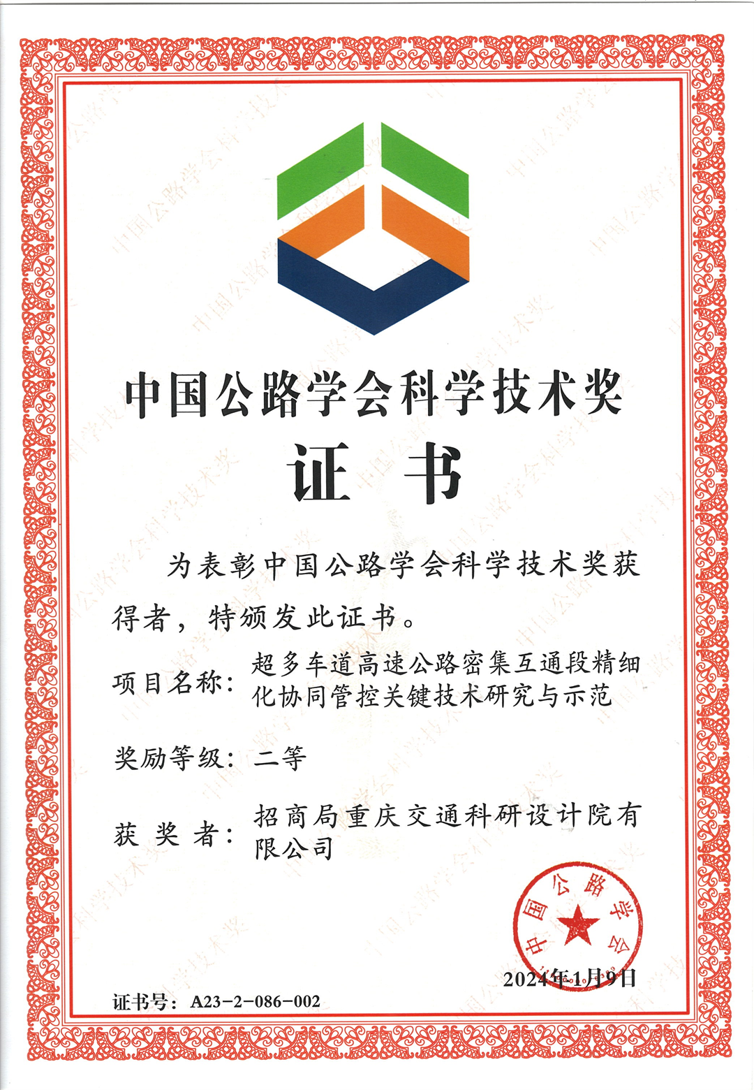 2023年度中國公路學(xué)會(huì)科學(xué)技術(shù)二等獎(jiǎng)