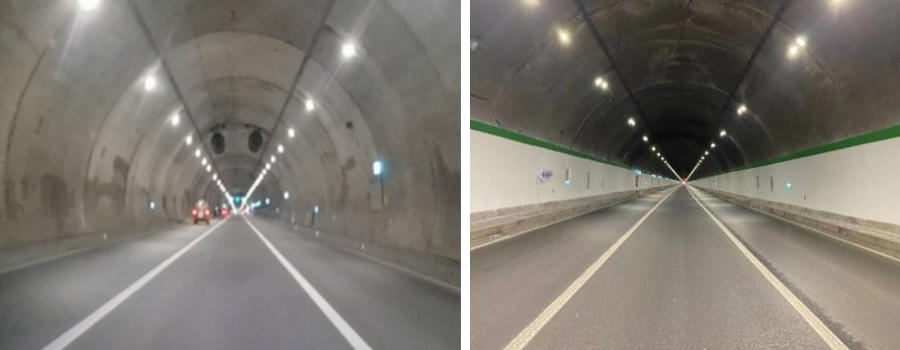采用新型隧道涂裝材料和工藝,實(shí)現(xiàn)隧道整體環(huán)境的亮化,提高隧道線形誘導(dǎo)性、橫通道及緊急停車帶區(qū)域的警示性,提高隧道照明亮度及亮度均勻度,提升照明質(zhì)量并有效抑制“側(cè)墻效應(yīng)”,提高隧道行車安全性和通行能力。經(jīng)大量工程實(shí)踐驗(yàn)證,與智能照明控制系統(tǒng)結(jié)合運(yùn)用,該項(xiàng)技術(shù)可實(shí)現(xiàn)照明節(jié)能15%左右,進(jìn)一步提升隧道照明品質(zhì),增強(qiáng)公眾出行的安全感、體驗(yàn)感和滿意度。“重慶市滬渝、渝黔高速公路隧道群智慧化提升項(xiàng)目”榮獲中國公路學(xué)會授予的“2023中國高速公路信息化年度杰出工程獎”。