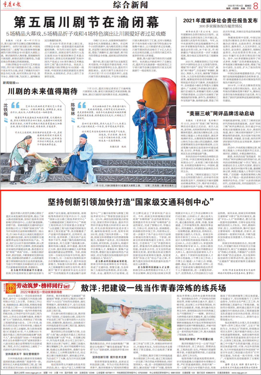 《重慶日?qǐng)?bào)》刊發(fā)招商交科劉偉署名文章